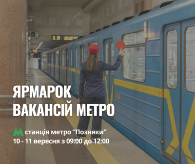Уже 10 та 11 вересня у вестибюлі станції метро «Позняки» працюватиме ярмарок вакансій. Про це повідомляють у КП «Київський метрополітен».