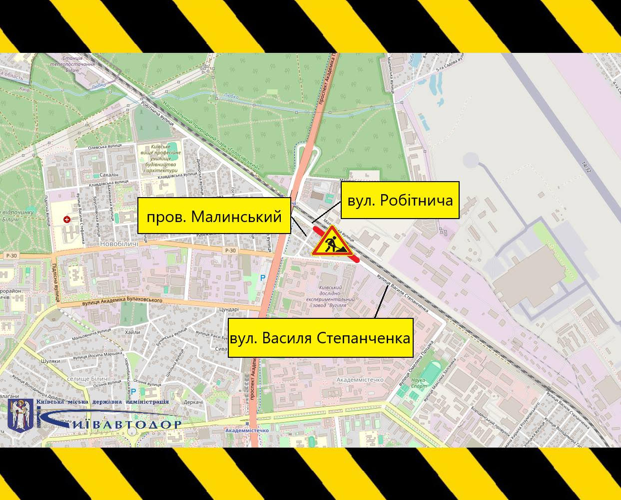 14 та 15 листопада частково обмежуватимуть рух вул. Робітничою у Святошинському районі столиці (+схема)