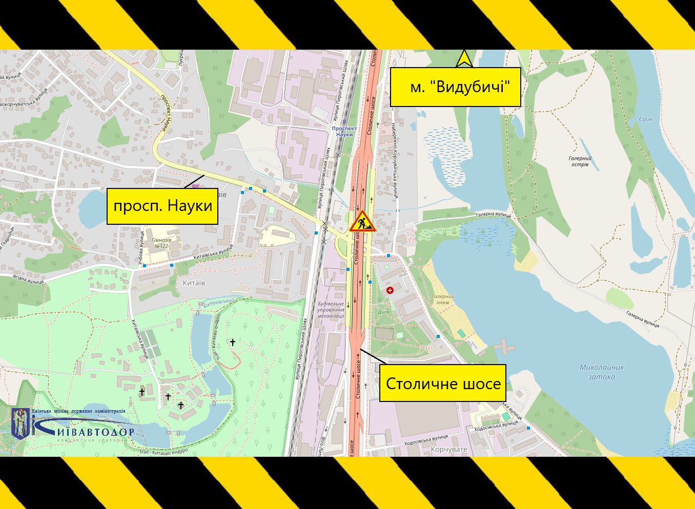 Роботи проводитимуть на правій смузі руху в напрямку від с. Корчувате до ст. м. «Видубичі».