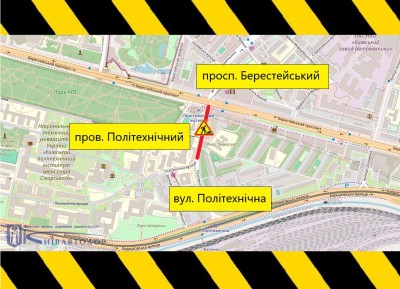 26 липня, з 8:00 до 17:00, частково обмежуватимуть рух Політехнічним провулком від проспекту Берестейського до вулиці Політехнічної. Про це повідомляють у КК «Київавтодор».