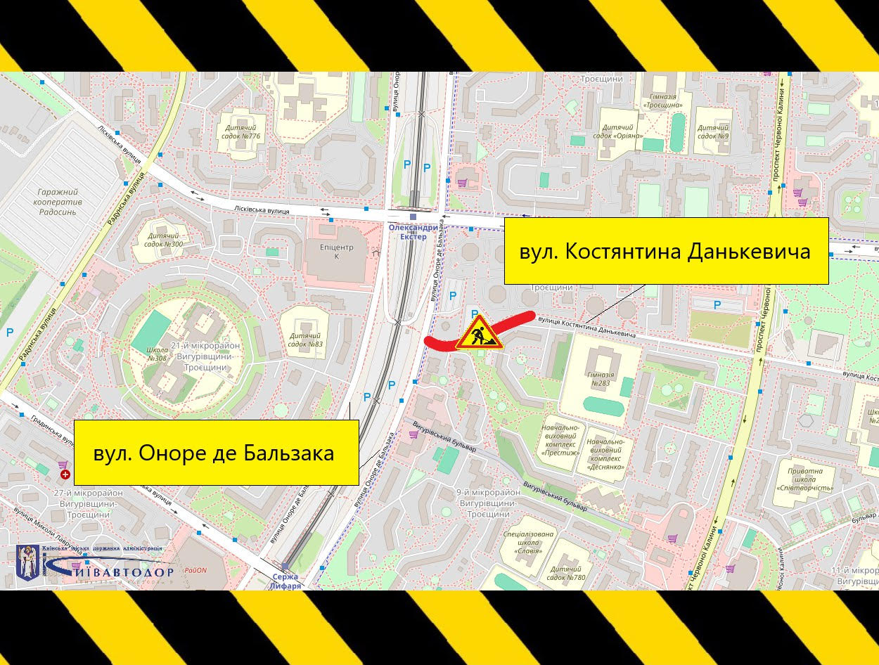 4 жовтня частково обмежуватимуть рух на вул. Костянтина Данькевича в Деснянському районі столиці (+схема)