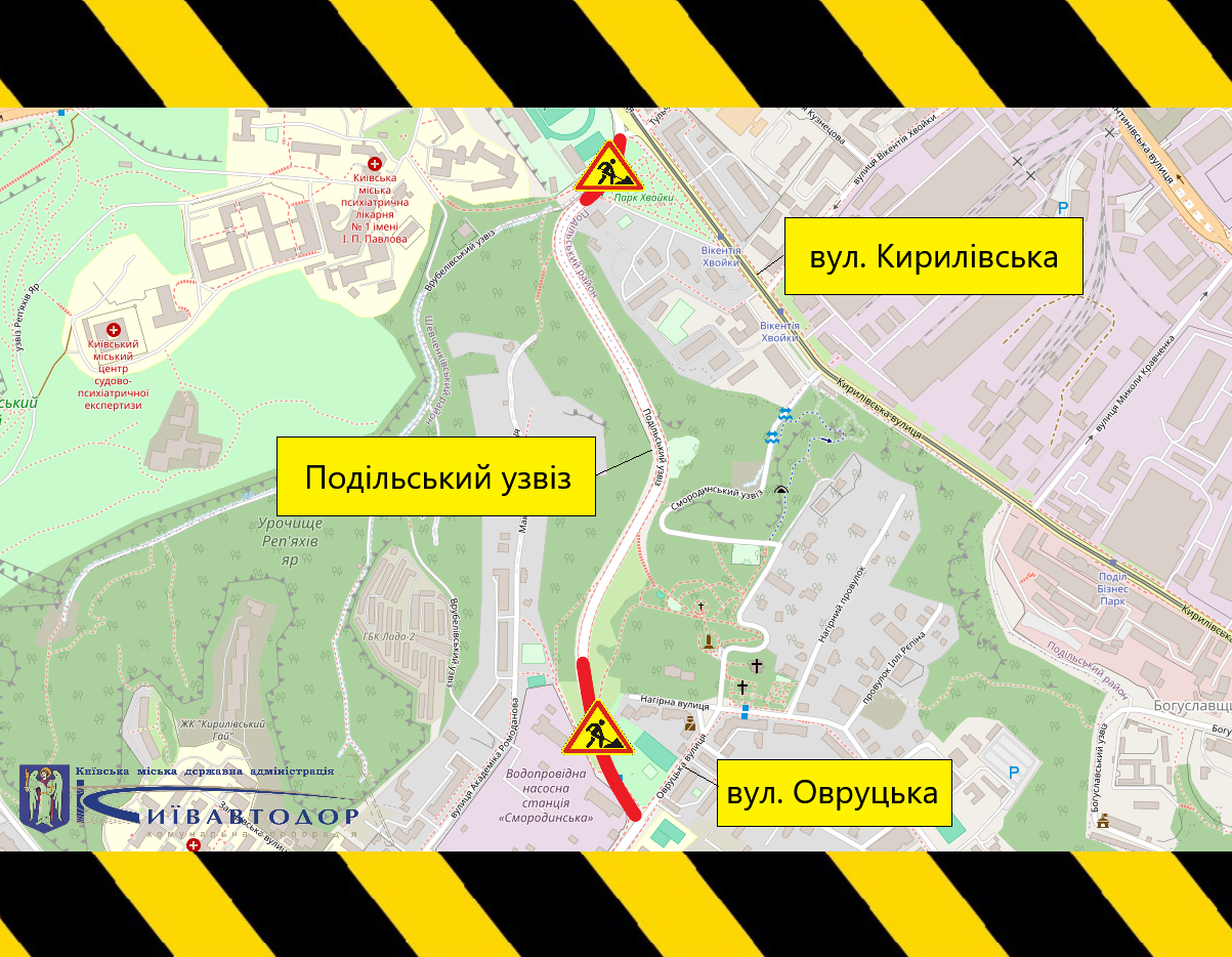 Із 16 до 31 серпня частково обмежуватимуть рух Подільським узвозом (+схема)