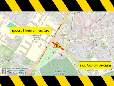 Із 7 липня до кінця серпня 2025 року частково обмежать рух транспорту Солом’янською площею (+схема)