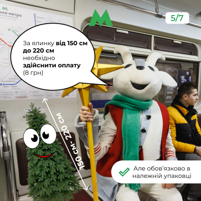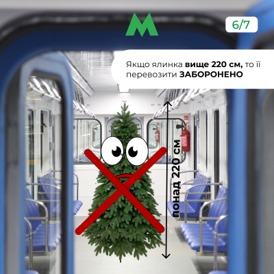 - ялинки висотою більше ніж 220 сантиметрів перевозити у підземці заборонено.