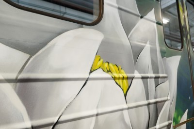 Артвагон курсуватиме «синьою» лінією столичного метро впродовж двох місяців. Партнером артініціативи стала мережа магазинів Akvarel, яка надала професійні матеріали та фарби для створення розпису.