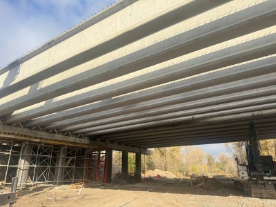 Мостовики влаштували останні 32 балки прогонової будови. Загалом їх 64 на споруді. Також влаштували нові опори, ригелі.
