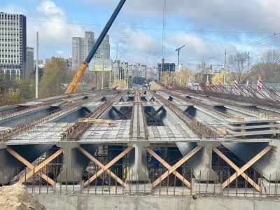 Триває капремонт шляхопроводу на вулиці Полярній в Оболонському районі: вже завершили монтаж балок і переходять до наступного етапу