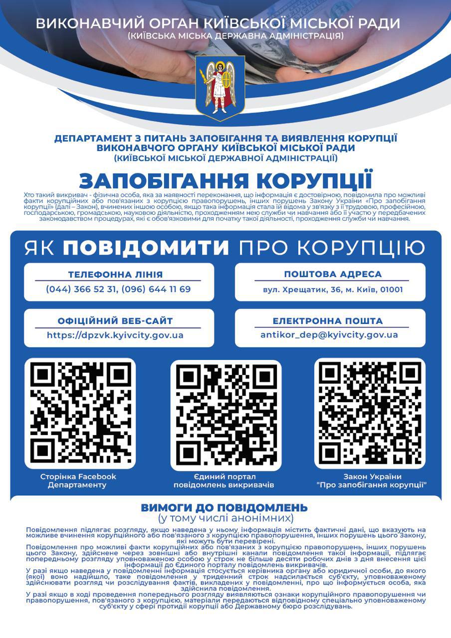 Спеціальна телефонна лінія Департаменту з питань запобігання та виявлення корупції КМР КМДА, за якою